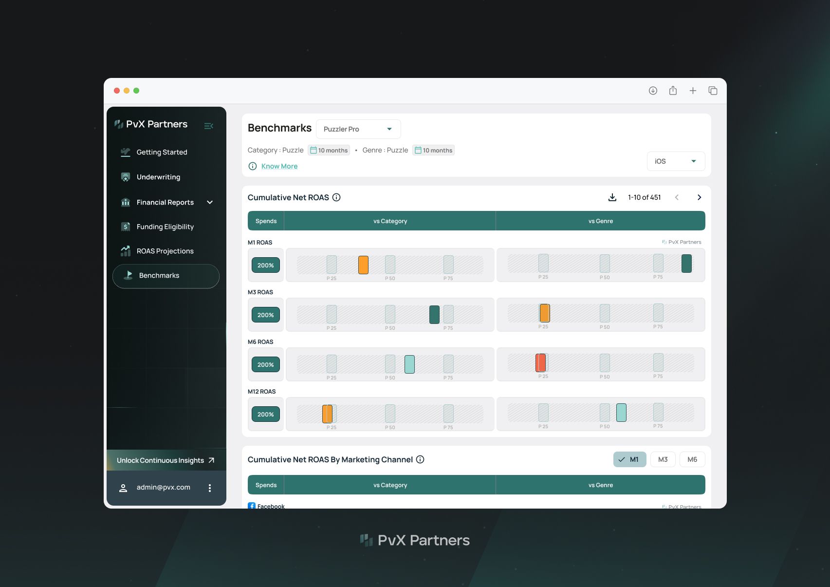 Lambda turns your cohort data into clear, actionable insights. You’ll understand where performance stands today, how you compare to others, and what payback looks like in the future. We’re tackling the problem of historically opaque industry data: PvX benchmarks your games against live data from hundreds of cohorts in your category —so you’ll know where you stand. In one streamlined dashboard, you get: